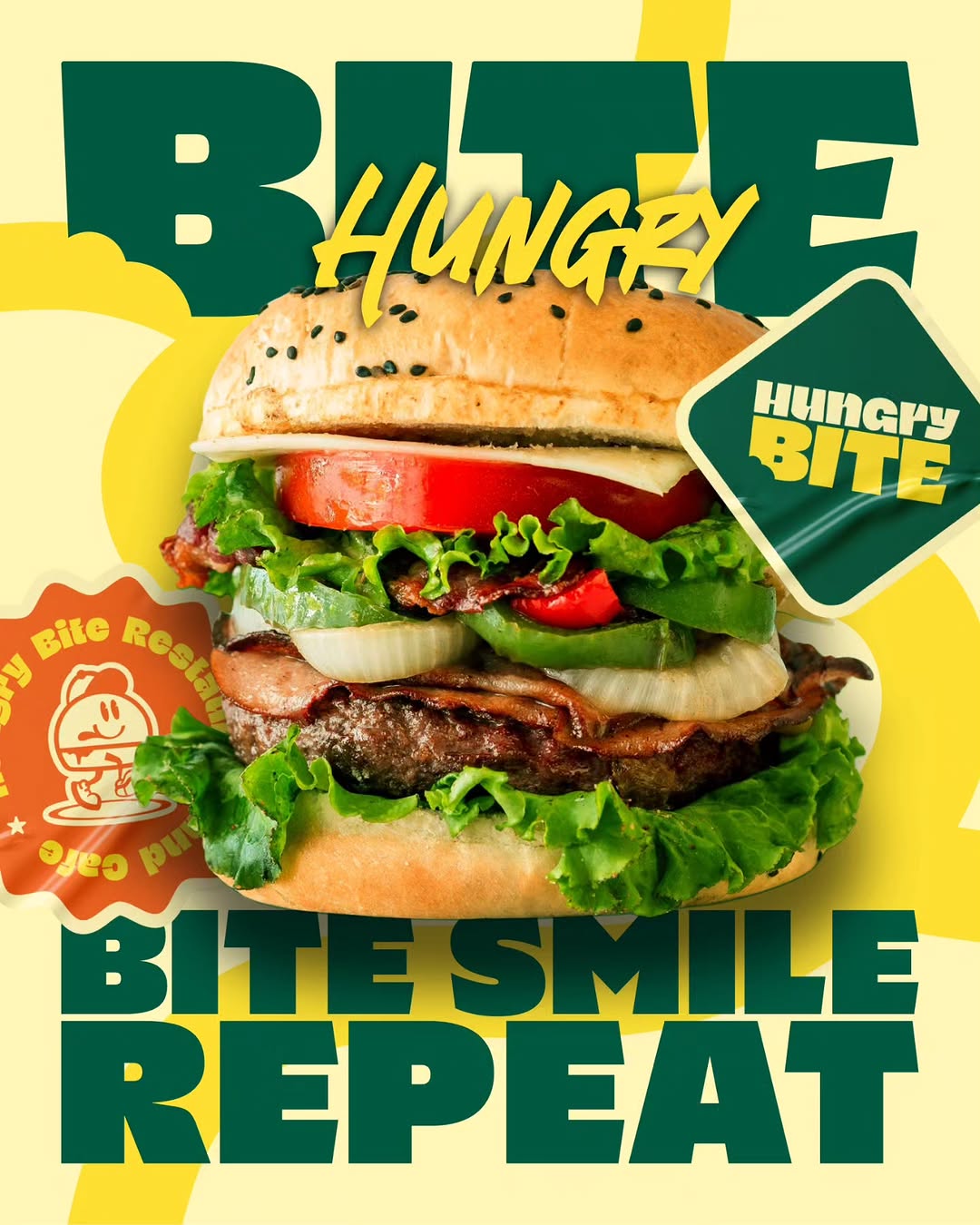 Hungry Bite is a dynamic food brand identity designed to capture attention and instantly trigger appetite. The focus was on creating a bold, youthful, and engaging brand presence that feels fast, energetic, and highly relatable for a modern audience across digital and physical platforms.